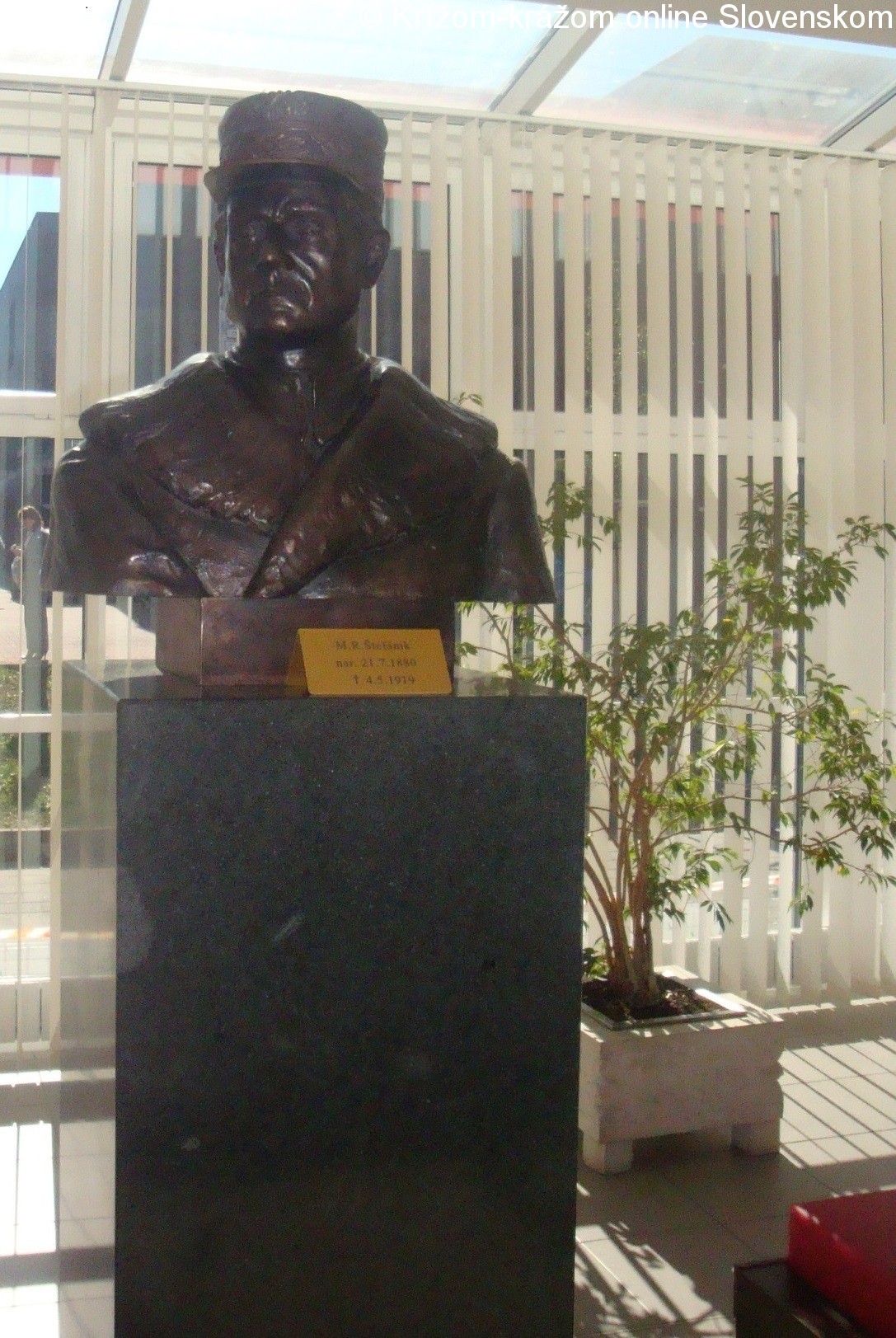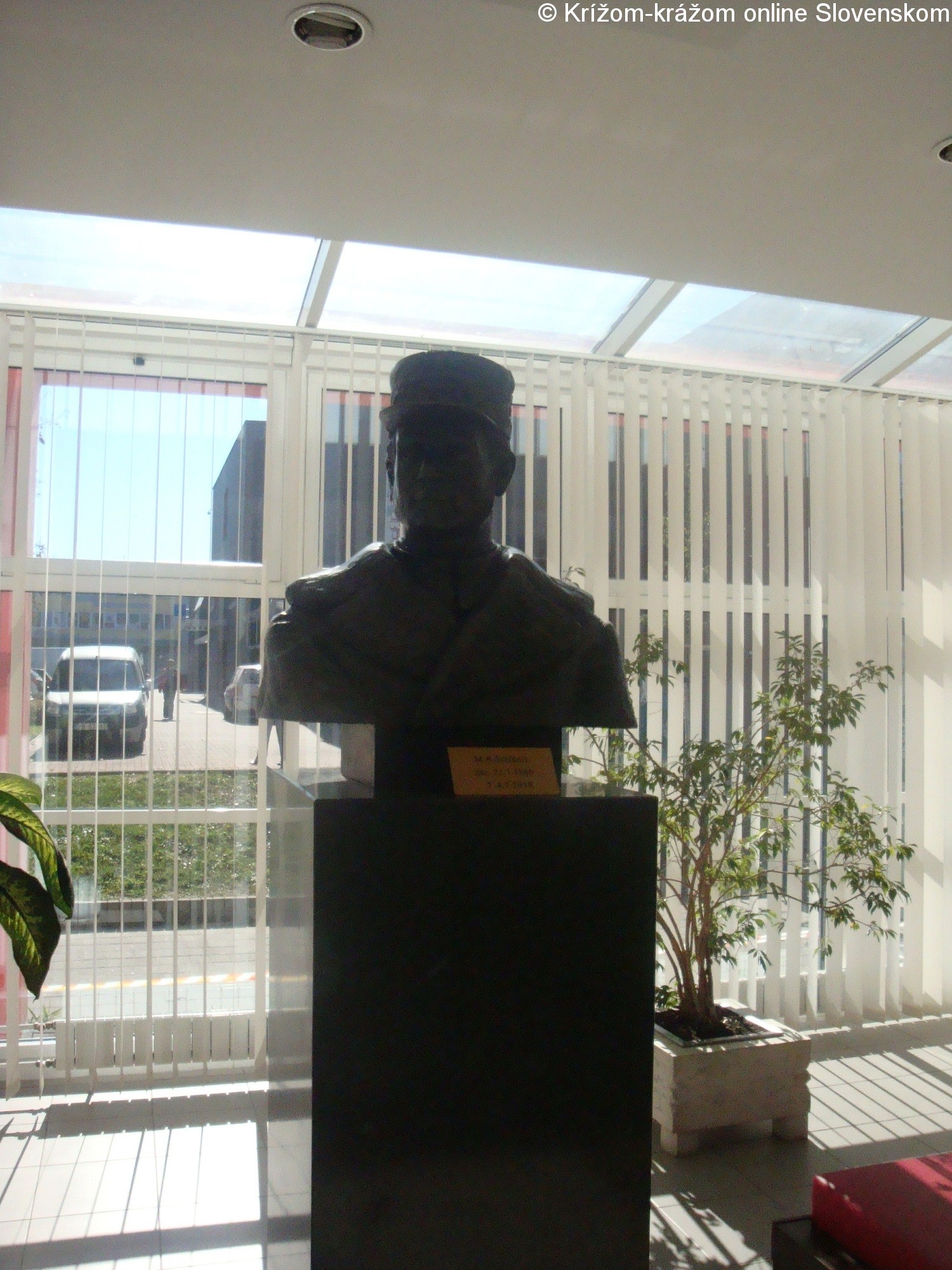 Bronzová busta M. R. Štefánika je osadená na žulovom hranolovom podstavci. Jej autormi sú akademický sochár Prof. Peter Roller (1948) a Magdaléna Rollerová, rodená Ihriská. Odhalená bola 30.10.2008. Umiestnená je vo foyer obradnej siene Mestského úradu v Považskej Bystrici. Od roku 2010 je zaradená medzi pamätihodnosti mesta.