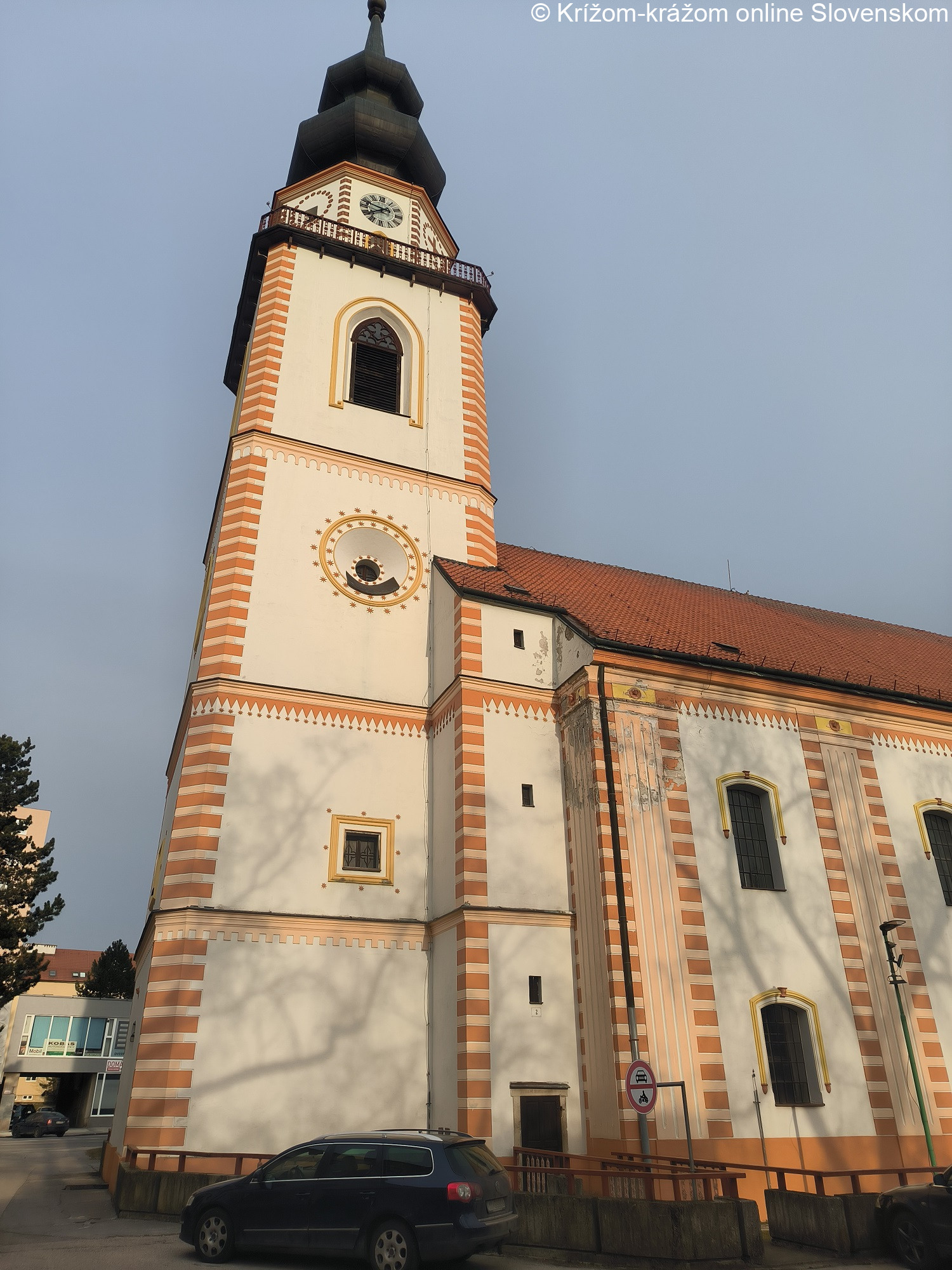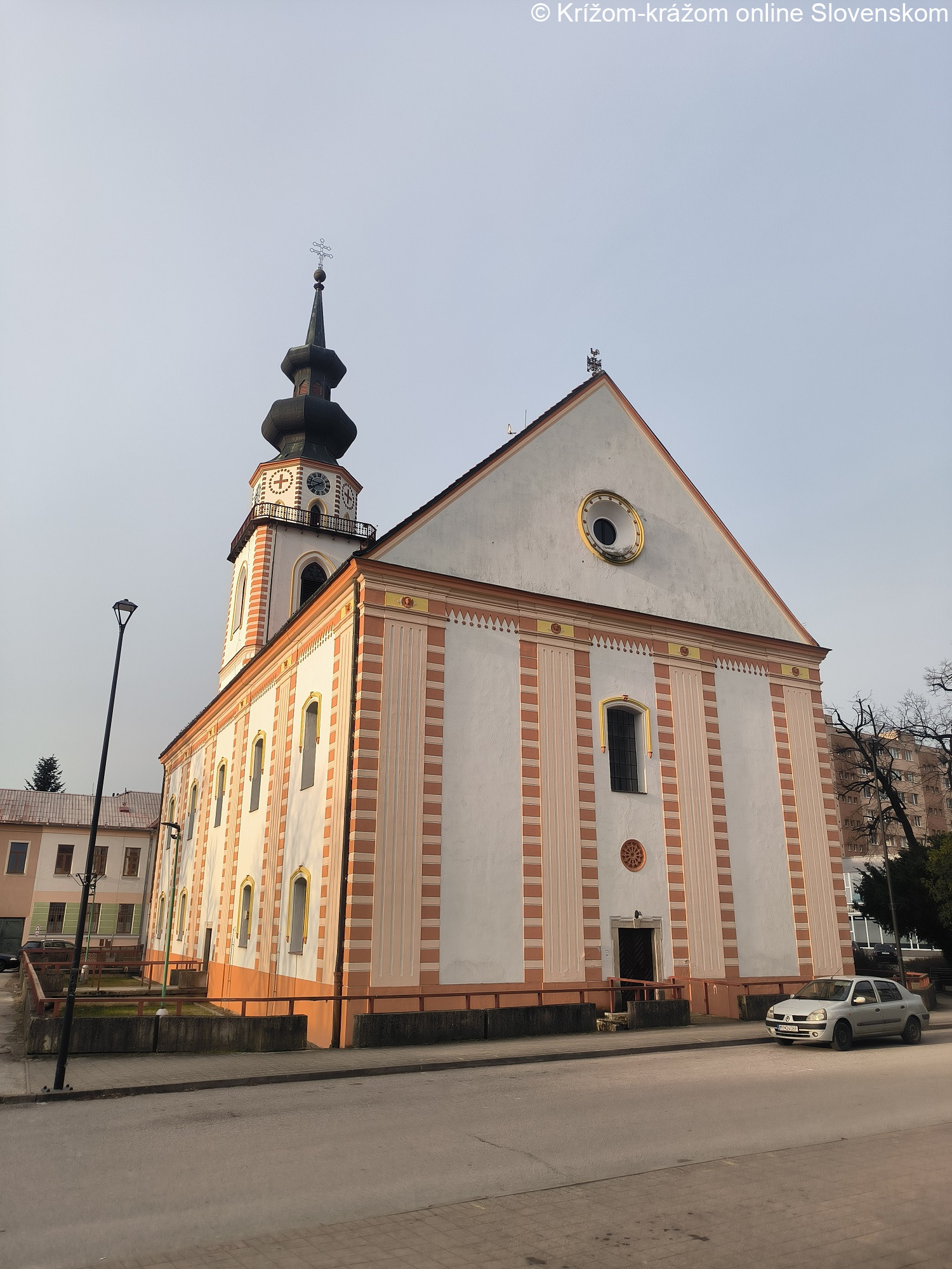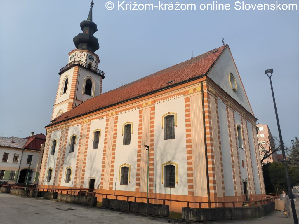 Kostol. Pôvodne barokový kostol bol vystavaný v rokoch 1784–1785 pôvodne bez veže. Vysvätený bol 8.novembra 1785. V roku 1855 bola k nemu pristavaná veža vysoká 67m a pravdepodobne sa pristúpilo aj k úprave fasád v klasicizujúcom výraze. Stavbu veže zabezpečoval farár Pavol Hajnóczy. Autorom projektu bol trnavský staviteľ Vogler, realizoval ju tesár Hollan z Hodonína. Do veže boli osadené zvony vyrobené v roku 1847 vo Viedni. Veľký zvon nesie meno M. R. Štefánika a váži 1.450kg, stredný má meno kňaza Jána Plachtu a váži 800kg a malý s hmotnosťou 600kg bol pomenovaný po Danielovi Krmanovi. Veža bola vysvätená 8.novembra 1856 a kríž vysoký 7m na ňu osadili rok pred vysvätením. Čiastočné úpravy stavby prebehli v rokoch 1876, 1923 a 1928. Komplexná obnova kostola bola realizovaná v rokoch 1982–1984. Opravená bola fasáda a vymenila sa pôvodná drevená konštrukcia veže za oceľovú. Kostol bol znovu vysvätený 25.novembra 1984. Je to trojloďová stavba s obdĺžnikovým pôdorysom, rovným záverom svätyne na severe, vežou so vstupom v podveží na juhu a vstupnou predsieňou na západe. Fasády kostola sú horizontálne previazané hladkým soklom, profilovanou korunnou rímsou a kladím. Vertikálne členenie tvoria v pravidelnom rytme pilastre, ktoré majú v drieku motív kanelovania rámovaný motívom nárožnej rustiky. Hlavice pilastrov sú mierne predstúpené, doplnené reliéfnou rozetou. Medzi pilastrami sú fasády lode členené v dvoch úrovniach nad sebou pravouhlými vertikálne orientovanými okennými otvormi so segmentovým záklenkom. Severná fasáda svätyne má v osi v úrovní prízemia pravouhlý vstupný otvor a nad ním rovnaký okenný otvor ako majú fasády lode. Fasády veže sú riešené identicky, horizontálne sú previazané soklom, kordónovými rímsami medzi podlažiami a vertikálne členenie tvorí rustika na nárožiach. V osi prízemia južnej fasády veže je pravouhlý vstupný otvor, v úrovni prvého poschodia sú v osiach fasád malé štvorcové okenné otvory a nad nimi kruhové okná v hlbokých šikmých špaletách. V úrovni zvonového podlažia sú vertikálne orientované zvukové otvory zaklenuté lomeným oblúkom. Vežu ukončuje osemuholníková užšia časť s ochodzou, ktorá je členená otvormi ukončenými lomeným oblúkom, nad ktorými sú hodiny. Architektonické prvky všetkých fasád sú v dvojfarebnom riešení tmavého a svetlého okra, plochy fasád majú farebnosť lomenej bielej. Hlavný vstup vedie do podvežia zaklenutého plytkou valenou klenbou, z ktorého sa vstupuje do strednej lode plynulo prechádzajúcej do svätyne. Zaklenutá je piatimi poľami pruskej klenby na pásoch dosadajúcich na mohutné hranolové piliere. Bočné lode majú valené klenby. Okolo celého obvodu priestoru prebieha emporové podlažie. Vstupná západná predsieň je zaklenutá českou plackou. Loď kostola a predsieň majú sedlové strechy s pálenou krytinou, veža má cibuľovú strechu s krytinou z medeného plechu. Vo vstupnej miestnosti kostola sú obrazy Daniela Krmana a farára Pavla Hajnóczyho. Kostol stojí v strede Myjavy na Námestí Milana Rastislava Štefánika.