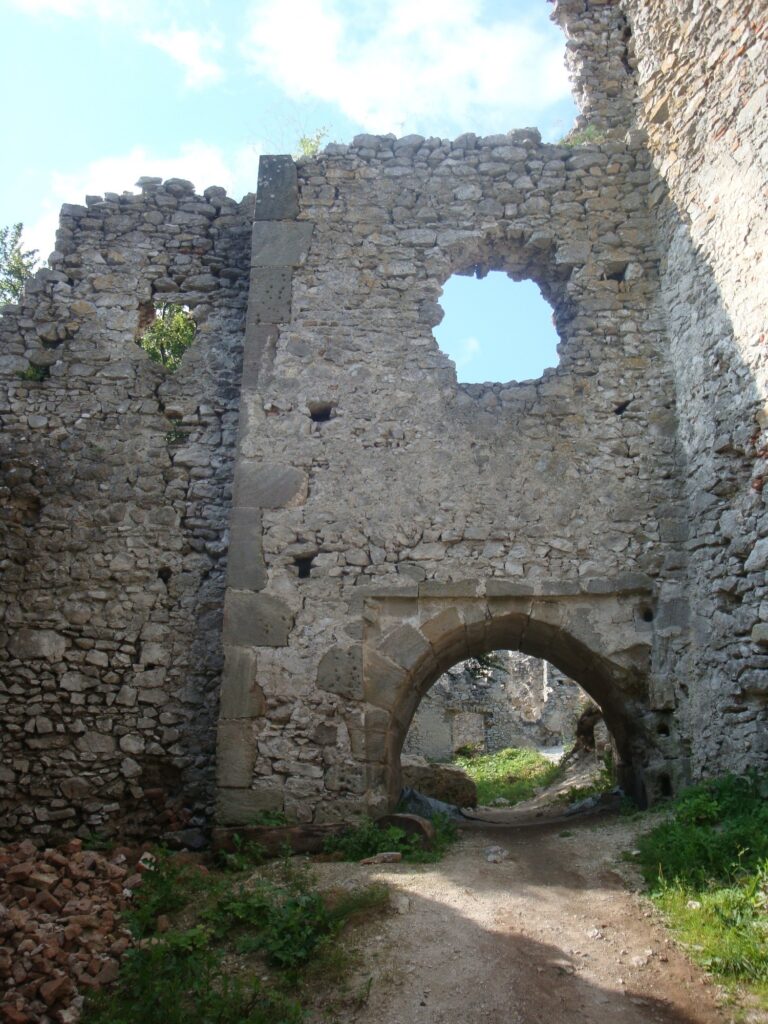 Hradné nádvorie I. Situované je v strede hradného jadra. Postavené bolo koncom 13.storočia v gotickom období. Upravované bolo v 16. a 17.storočí. Malo polygonálny pôdorys. Zničené bolo v roku 1708.