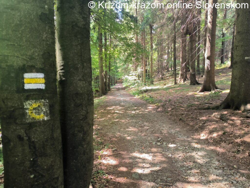 Priebeh a zaujímavosti chodníka: Chodník začína v Hornej Marikovej, v miestnej časti Ráztoka na autobusovej zastávke, priamo pod dreveným Kostolom Božského Srdca Ježišovho. Pokračuje stúpaním okolo neho a po chvíli vchádza do lesa, ktorým stúpa až na hrebeň Javorníkov a po ňom pokračuje na Malý Javorník (1.019,2m), kde sa napojením na červený chodník (0842) končí. Pokračovať je možné hrebeňom po červenom chodníku (0842) na Stratenec (1.055,0m) a Veľký Javorník (1.071,5m) alebo opačným smerom hrebeňom k chate Portáš.