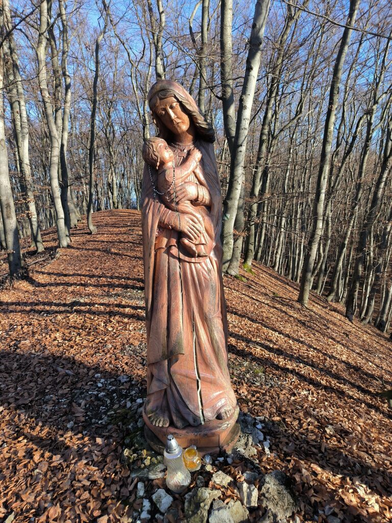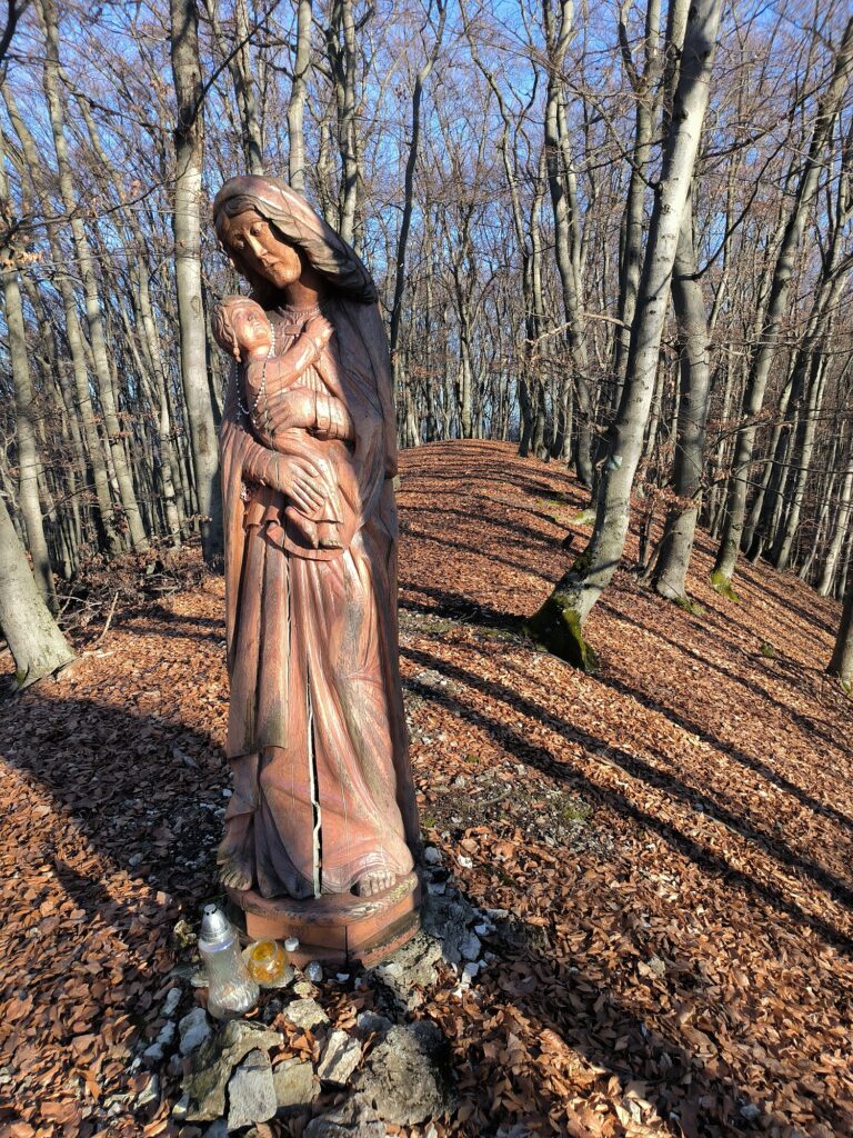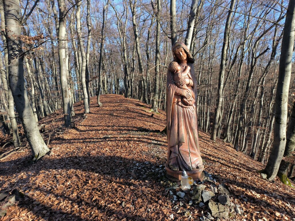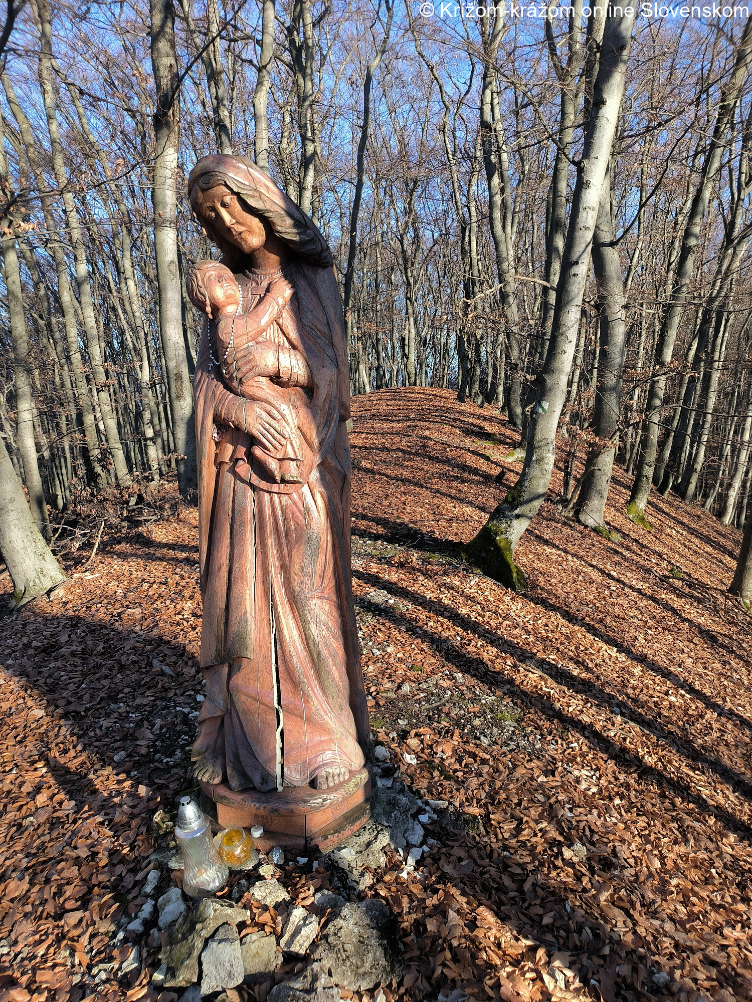 Autorom drevenej sochy Madony je rezbár Vladimír Ragula. Po zhotovení sochy bola vyvezená a osadená občanmi miestnej časti Prosné. Socha sa nachádza v Udiči, v katastri miestnej časti Prosné, na najvyššom bode náučného chodníka Prosňanským chotárom na vrchu Žeravica (608,0m).